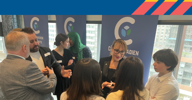 Par ailleurs, une douzaine d'élèves du Conseil scolaire Viamonde, accompagnés de membres du personnel de leur école secondaire, ont eu l'opportunité de rencontrer la "dragonne" et prolifique femme d'affaires Danièle Henkel, lors du plus récent déjeuner du Club Canadien à Toronto. Madame Henkel a été très généreuse de son temps et a discuté avec les jeunes de son expérience d'entrepreneure issue de l'immigration au Canada. Une rencontre inspirante pour nos jeunes férus d'entrepreneuriat!