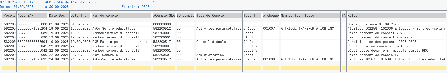Rapports des fonds scolaires en date du 18 septembre 2025: rapport sommaire rapport détaillé