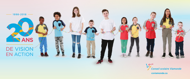 Le Conseil scolaire Viamonde s’étend d’ouest en est de Windsor à Trenton et du nord au sud de Penetanguishene à la région de Niagara. Il accueille environ 12 600 élèves dans ses 53 écoles élémentaires et secondaires où tout est possible. Jetez un coup d’œil à sa page Facebookopen_in_newCe lien s'ouvrira dans une nouvelle fenêtre ou encore à son compte Twitter @CSViamondeopen_in_newCe lien s'ouvrira dans une nouvelle fenêtre pour suivre toutes les nouvelles du Conseil et des écoles.