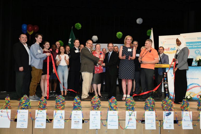 Toronto, le 25 mai 2018 – Le Conseil scolaire Viamonde a procédé aujourd’hui à l’inauguration du nouvel édifice abritant l’École secondaire Gaétan-Gervais à Oakville. Un réel moment de fête, non seulement pour les élèves et les membres du personnel de la nouvelle école, mais aussi pour l’ensemble du Conseil qui en a profité pour clore les festivités de son 20e anniversaire de fondation. Toutes les écoles ont participé à l’événement en assistant en direct à la diffusion en simultané via Facebook.