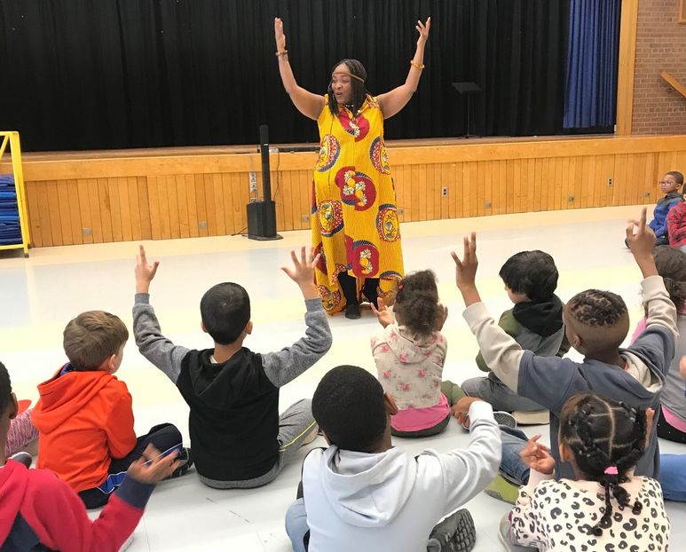 Toronto, le 20 février 2019 – Depuis le début février, les écoles Viamonde célèbrent à leur façon la contribution importante de personnalités noires au patrimoine et à la société moderne du Canada. L’une de ces activités marquantes s’est déroulée cette semaine à l’École élémentaire Jeanne-Lajoie de Toronto, où l’artiste francophone Djennie Laguerre, alias Madame Bonheur, est allée à la rencontre des élèves de la première à la troisième année. Pendant 60 minutes, Madame Laguerre a sollicité plusieurs des sens des élèves en livrant des contes antillais et africains, rythmés par le chant et la danse.