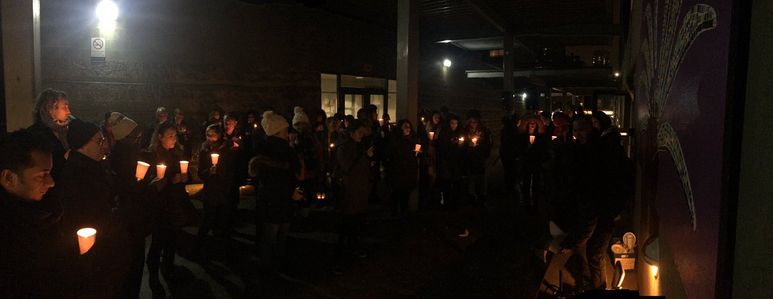 Toronto, le 8 février 2017 – L’émotion était au rendez-vous hier soir lors de la vigile organisée par le Collège français de Toronto en marge de l’attentat survenu la semaine dernière à la mosquée de Sainte-Foy de Québec. Les discours ont été prononcés par des élèves, du personnel enseignant et des parents devant la communauté scolaire venue en grand nombre malgré les conditions météorologiques. Les messages étaient tous porteurs de paix, d’inclusion et de respect des différences. Chandelle à la main, le groupe a aussi observé une minute de silence lors de ce rassemblement très solennel.