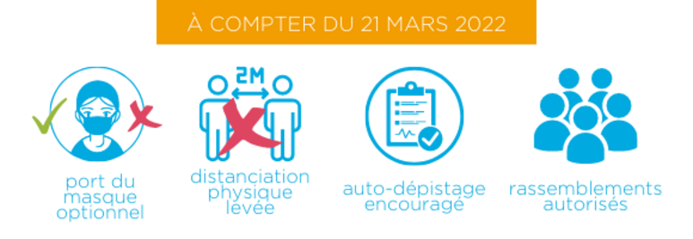 Auto-dépistage quotidien Il ne sera plus exigé de remplir un questionnaire d’auto-dépistage à chaque jour. Néanmoins, cette pratique est encouragée afin que chaque personne puisse prendre les mesures appropriées si elle présente des symptômes de la Covid-19.