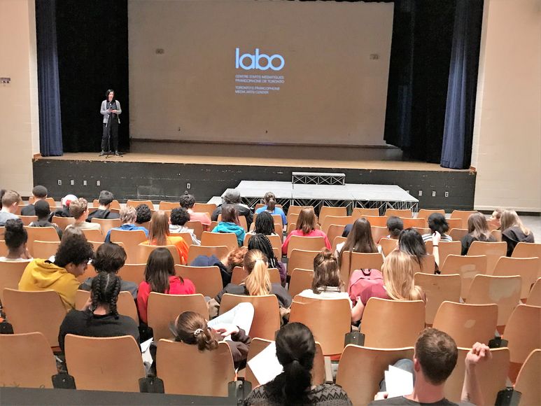 Toronto, 11 février 2019 – Des élèves de 9e à la 12e année de l’École secondaire Toronto Ouest ont assisté à un mini festival de courts métrages dans le cadre du projet La troisième langue/The Third Tongue organisé par le Labo, le Centre d’arts médiatiques francophone de Toronto.