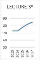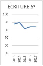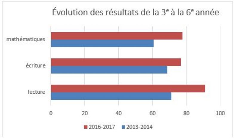 Ci-dessous, on peut constater les progrès de la cohorte d’élèves de 3e année en 2013-1014 qui ont passé les tests de 6e année en 2016-2017.